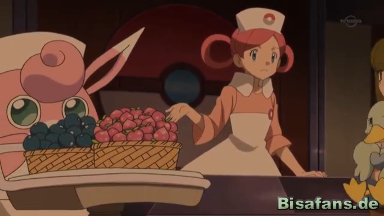 Währenddessen ist Ash fertig mit seiner Arbeit auf dem Dach. Er bemerkt, dass Heureka und Serena die Uniform der Joys tragen, damit sie besser erkannt werden. Schüchtern fragt Serena, wie er sie darin findet. Sie gefällt ihm.