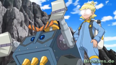 Die Erfindung sucht weiter nach dem Fels und entfernt sich von unseren Freunden, was Team Rocket ausnutzt, um Lavados zuerst zu finden. Die Maschine bleibt stehen und scannt wieder, was Team Rocket nicht weiß. Es denkt, dass sie kaputt ist und hält das Geräusch, das nun ertönt, um zu zeigen, dass der Fels gefunden wurde, für einen Alarm. Jessie tritt das Gerät, was es zur Explosion bringt. Dies hören Ash und seine Freunde und rennen in Richtung der Rauchwolke. Dort sehen sie die kaputte Erfindung, die nun auf sie zufährt und sie verfolgt, ehe sie in die Magma stürzt und nun endgültig funktionsuntüchtig ist.