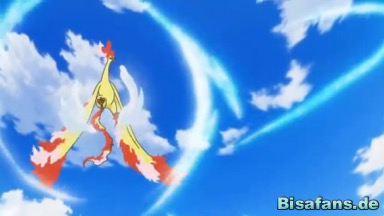 Lavados fliegt auf es zu und Fiaro setzt Sturzflug gegen es ein, welcher jedoch nicht trifft, da Lavados ausweichen kann. Ash lässt es ein weiteres Mal attackieren, Lavados kontert mit Flammenwürfen, denen der Vogel problemlos ausweichen kann. Dennoch trifft die Attacke von Fiaro Lavados nicht.
