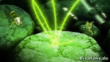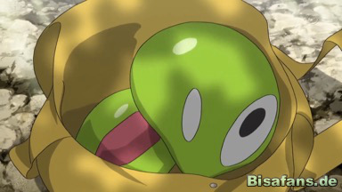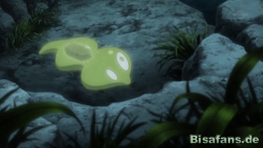 Schließlich essen sie zu Abend, doch Blobby scheint nichts zu wollen. Sowohl Pofflés als auch Beeren lehnt es ab. Stattdessen springt es auf einen Stein und scheint Photosynthese zu betreiben. Tatsächlich aber sucht es nach Zygarde-Zellen und scheint etwas zu entdecken. Schließlich schläft es ein.