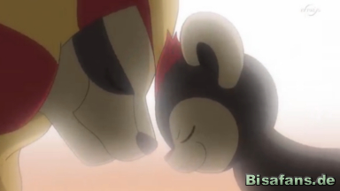 Es gelingt ihnen, das Pyroleo einzusaugen und versuchen darauf das gleiche mit Pikachu, da sich die Freunde und das Leufeo ebenfalls eingemischt haben. Sie kommen aber nicht weit, da das Leufeo mit einem Feuerball angreift. Team Rocket kontert dies mit einem gekonnten Wurf des Roboters, womit das Pokémon gegen einen Fels prallt. Das erzürnt das Pyroleo so sehr, dass es zu glühen beginnt und Hitzekoller einsetzt.