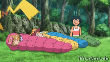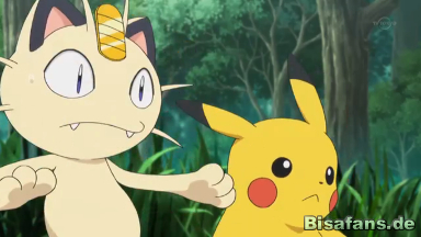 Pikachu hingegen ist zu den Freunden gelaufen und erzählt Ash die Lage. Dieser antwortet jedoch nur mit merkwürdigen Tönen, worauf Pikachu erneut wegläuft.