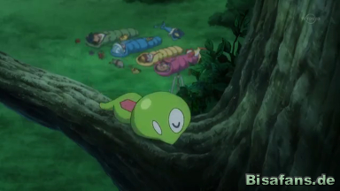 Doch Pikachu greift an. Es ist jedoch nicht in der Lage, das Wesen zu treffen, da es Pikachu einfach durch sich durch lässt. Es verbrennt sich jedoch. Pikachu versteckt sich hinter einem Baum, als die drei Pokémon vom Fluss auftauchen. Gemeinsam kämpfen sie gegen das Feuerwesen. Als Grebbit getroffen wird, verwandelt es sich zu einem Scoppel zurück. Nun tauchen auch Pam-Pam und Igamaro auf. Sie fangen an zu streiten und entwickeln sich hierbei. Pikachu beruhigt sie einiger Maßen. Gemeinsam können sie das Feuerwesen in viele kleinere Feuerwesen zerteilen.
