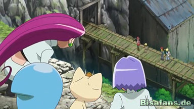 Kurz bevor es Team Flare gelingt Blobby, bzw Z1, einzufangen, mischt sich nun auch Team Rocket ein. Auch sie haben es auf das begehrte Pokémon abgesehen. Nun sind es also schon drei Seiten die sich um Heurekas kleinen Freund streiten. Ash schickt sein Quajutsu aufs Feld. Es gelingt ihm schnell Blobby zurückzuholen.