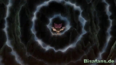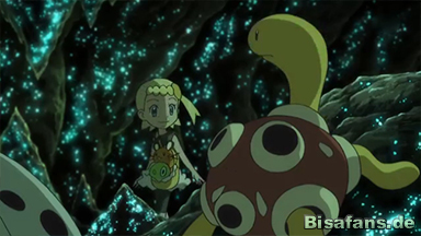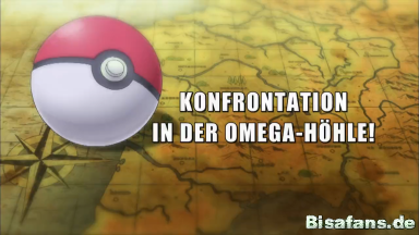 Die Höhle wird mittlerweile von vielen verschiedenen Pokémon bewohnt. Unter anderem sind Ariados, Pottrott und Stollrak beim Umherstreifen zu beobachten. Ein wunderschöner Anblick. Kurze Zeit nach dem Betreten der Omega-Höhle springt Blobby Heureka aus den Armen und läuft vor. Heureka und die anderen nehmen selbstverständlich sofort die Verfolgung auf. Sie können nur schwer folgen, Blobby scheint auf der Suche nach etwas bestimmten zu sein. Um bessere Sicht zu bekommen, ruft Serena ihr Rutena dazu. Im Nu ist der dunkle Ort hell erleuchtet. Ein langer und anstrengender Weg liegt vor unseren vier Freunden, auch vorm Klettern oder Krabbeln bleiben sie nicht verschont. Blobby, nach wie vor absolut zielstrebig, springt einen steilen Abhang hinunter und verschwindet in der Tiefe der Höhle. Um einen anderen Weg zum Boden zu finden helfen Ashs eF-eM sowie Citros Luxtra bei der Suche. Team Rocket sind den jungen Trainern und ihren Pokémon dabei stets auf der Lauer.