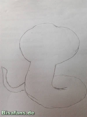 Hals malen wir soetwas wie ein Pfeil. An den gebogenen Seitendes