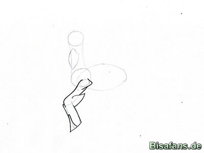 Schritt eins. Zeichne zum Anfang ein Oval,