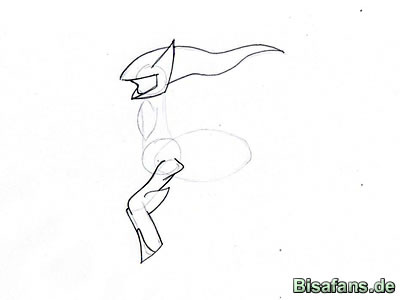 Ausarbeitung des ersten Beines. Fangt links mit der gewellten Linie