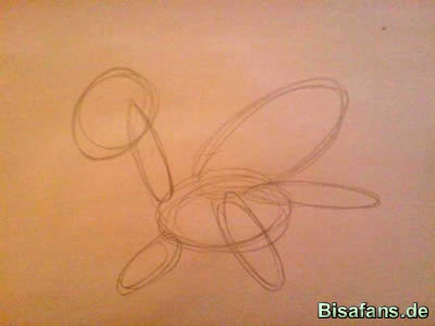 Zuerst zeichnet ihr, wie immer, die Grundform in Form von Ovalen und Kreisen.