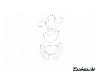 gebogene Striche. Dann folgt der quasi due Hüfte am Unterleib, an