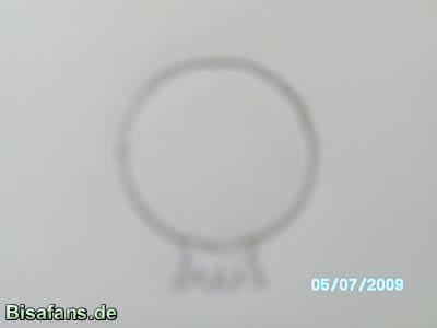 einen kleinen Kreis als Mund.Um den Mund kommt dann noch ein X.