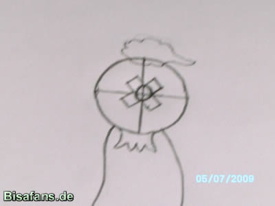 Dann malt ihr eine "Krone"unten an den Kopf.