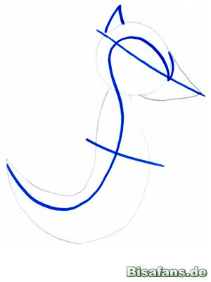 bis zum Schwanzende verläuft. Jetzt kommt am Ende der Hilfslinie,