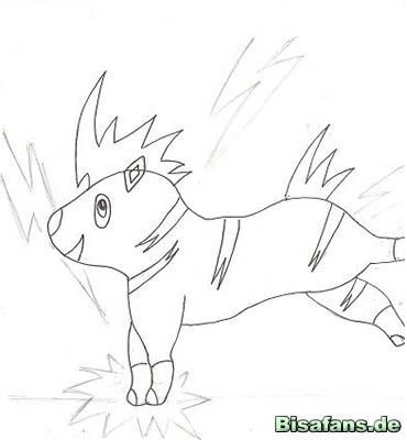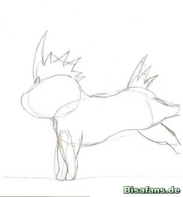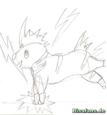 Beine, den Blitz auf dem Kopf und den Schwanz zeichnen. Auch die