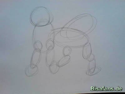 Jetzt macht ihr den Schwanz. Anhand der Kreise und Ovale ist das leicht.