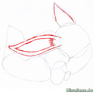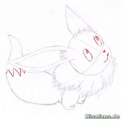 Herzlich willkommen bei meinem Evoli-Zeichenkurs! Rote Linien sind die neu gemalten.