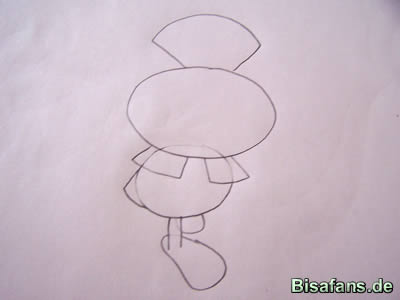 unter dem Kopf einen etwas kleineren Kreis für den Körper.
