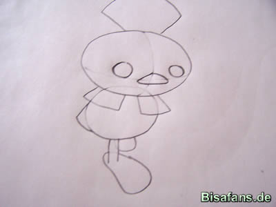 Schnabel zu platzieren. Die Linien sollten nicht ganz gerade sein,