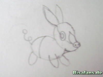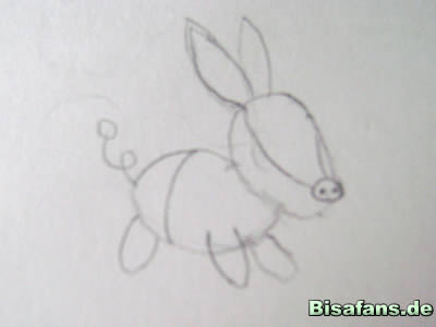 Dann füg die Ohren hinzu. Danach folgen noch die Füße und das
