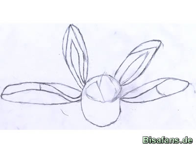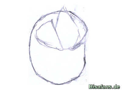 Oval malt. Dann den Schwanz zeichnen, indem man genau wie bei den