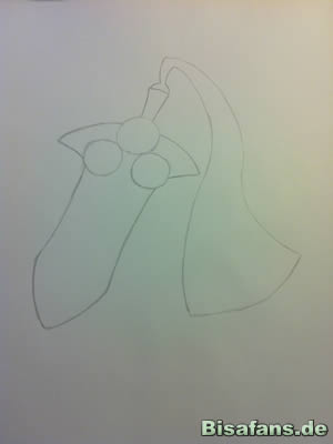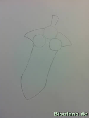 Beachtet auch, dass der Umriss nicht schnurgerade ist, sondern sich nach unten hin etwas weitet bevor er spitz zuläuft.