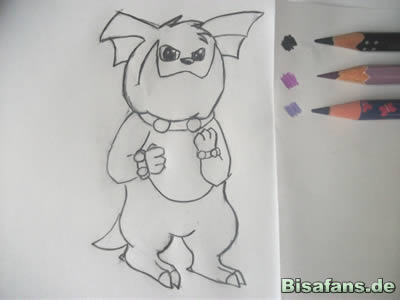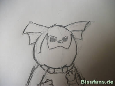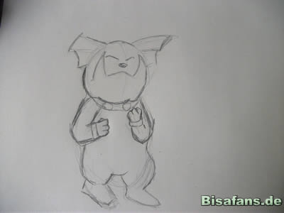 Zuerst werden die groben Umrisse des Granbull gezeichnet.