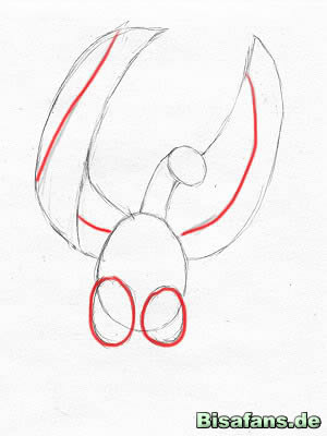 konkreten Körperlinien von Ho-Oh an; ziehe die Linien vom Kopf Oval