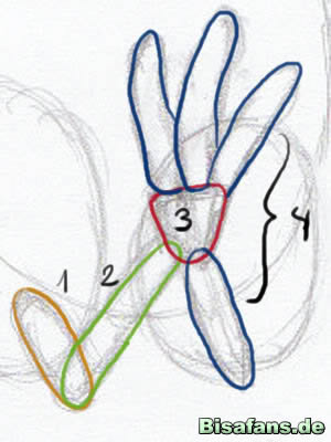 ein Kreis (3). An diesem Kreis sind wiederum die 4 Krallen, diesmal