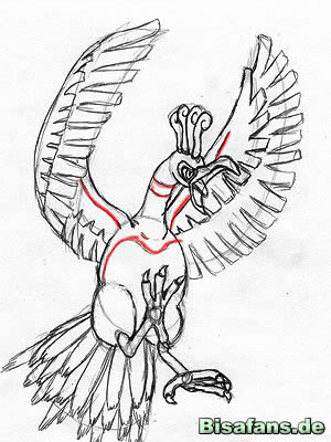 dir eine weitere Hilfslinie in die Flügel von Ho-Oh, achte dabei