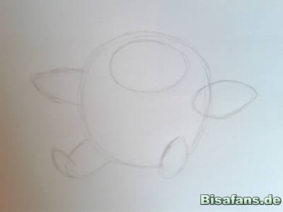 zeichne ich für den Körper einen Kreis und für das Gesicht ein