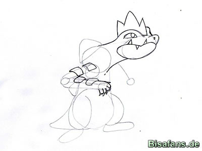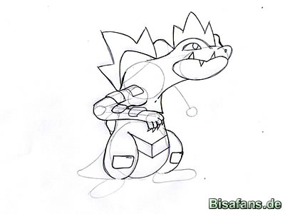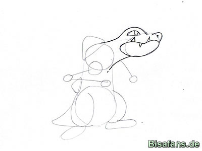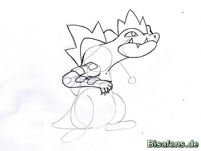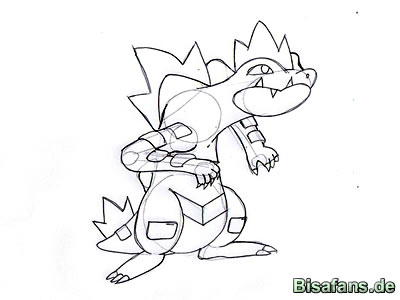 Schweif von Impergator. Wenn das erledigt ist, zeichne zwei Ovale