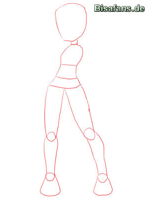 - Als nächstes noch die Form der Füße eizeichnen. Rein zeichnerisch gesehen sind diese nicht mehr als nach hinten gestreckte Trapeze.