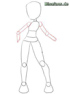 - An dem Oberkörper die Kreise, also die Schultern, einzeichnen.