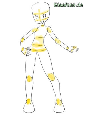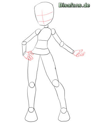 - Diesmal habe ich auch Kreise and den Verbindungstellen der Gelenke eingebaut. Diese Kreise helfen, die richtigen Porportionen und den richtigen übergang zu finden. Sie kommen an den folgenden Stellen hin: Knie, Fußgelenk, Schultern, Elle, Handgelenk.