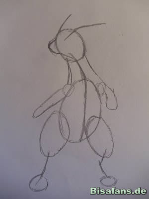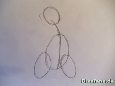 den Schwanz nachziehen und schonmal ein Oval für das Auge malen.