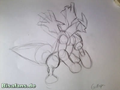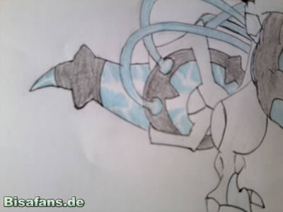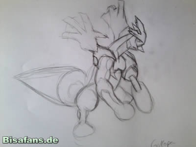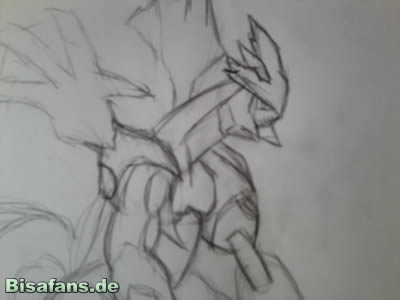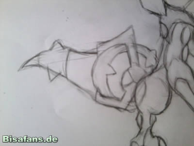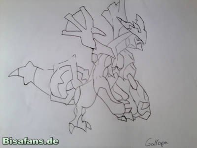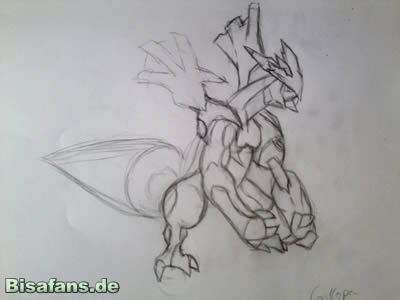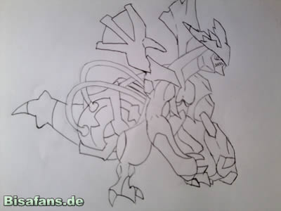 bei Zekrom, der linke aber sehr „eckig“, wie der Kyurems. Die Beine