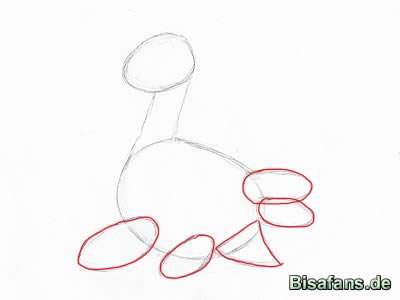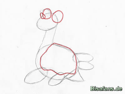 Zeichne zwei weitere eierförmige Ovale, und zwar diesmal auf Lapras