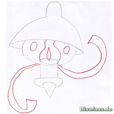 Nun die Arme, die Augen und die Flamme. Beachtet dass die Flamme mindestens eine Windung hat.