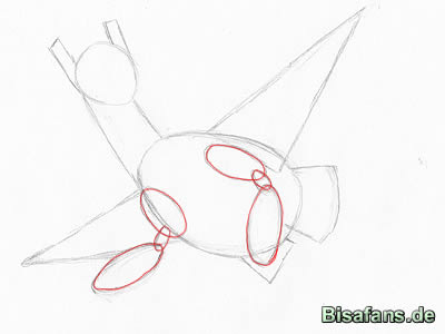 Körper-Oval. Der linke „Fuß“ ist etwas einfacher, da er halb hinter
