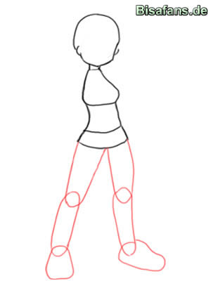 Schultern, einzeichnen. Dann zwei Striche, oder eine gestreckte