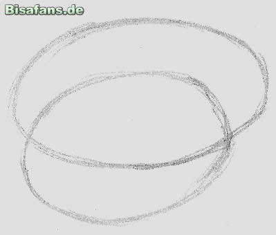 Zuallererst zeichnet man zwei, sich überlappende, Ovale. Das kleinere, das später Loturzels Körper sein wird, liegt unter dem größeren Oval, das das große Blatt auf Loturzels Kopf darstellen wird. Ich empfehle, mit dem kleinen Oval anzufangen, damit Loturzel später nicht zu kurz kommt und man nicht nur das Blatt sieht.