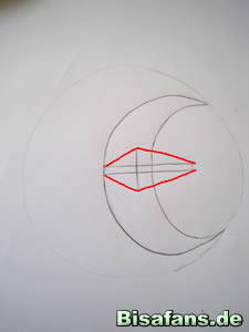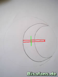Die roten Linien zeigen die neuen Linien, die grüne ist eine Hilfslinine.