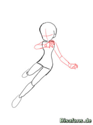 - Dann zeichnet ihr den Oberkörper, welcher sich "eigentlich" nur aus zwei Trapezen bildet: ein umgedrehtes oben (Brustbereich) und eins richtig rum, der Hüftbereich, etwas dadrunter.