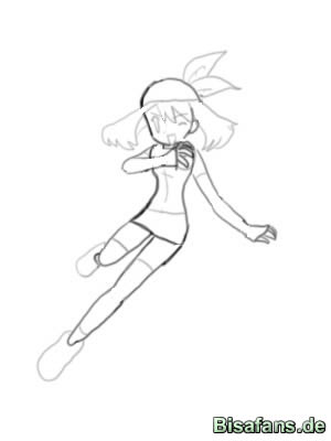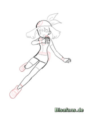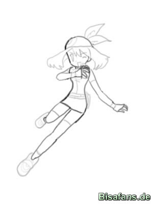 - Dann formt ihr das Kinn aus und zeichnet das Ohr dazu TIPP: Ihr solltet nicht nur das Kinn, sondern den ganzen Kopf zeichnen, da bei dem Zeichenstil von Pokémon oft die Haare, Kopfbedeckung etc. nur im Bereich des eingezeichneten "Kreises" sind (bei Mai/May/Haruka wäre das zB. das Bandana, wie man gleich sieht)