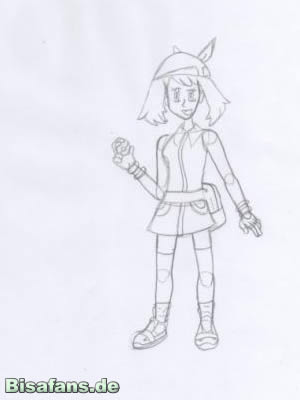 Als nächstes kommen Arme und Beine an die Reihe, ich habe einen Pokeball in Maikes Hand gemalt.