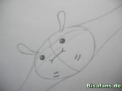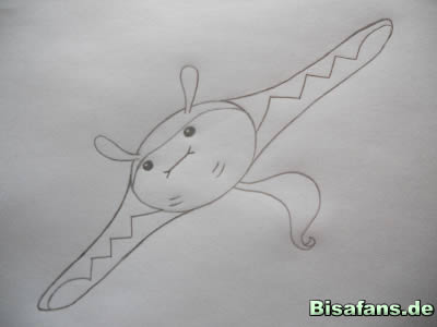 dieser Linie werden die Fühler gezeichnet. Sie fangen sehr schmal
