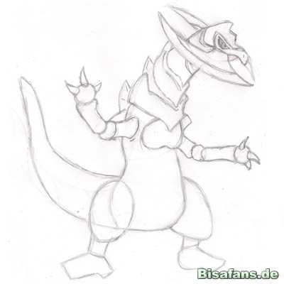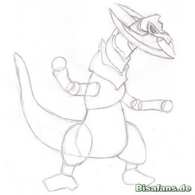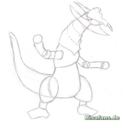 Jetzt den Schwanz. Ein paar Linien, wie im