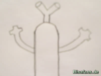 Für die Arme malt ihr zwei Stangen die am Ende ein Kreuz haben.