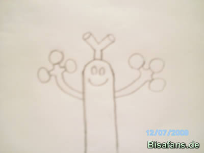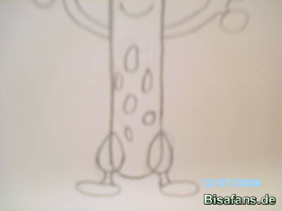 Da Mogelbaum keinen richtigen Kopf hat,müsst ihr das Gesicht ohne Hilfslinien zeichnen.Das schafft ihr auch so.Einen breiten Mund und zwei Augen.