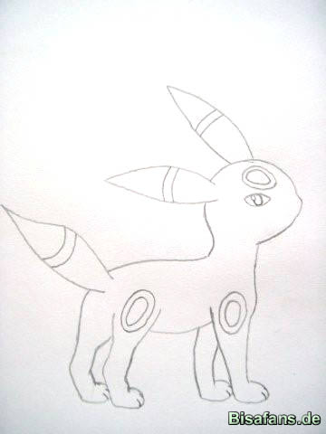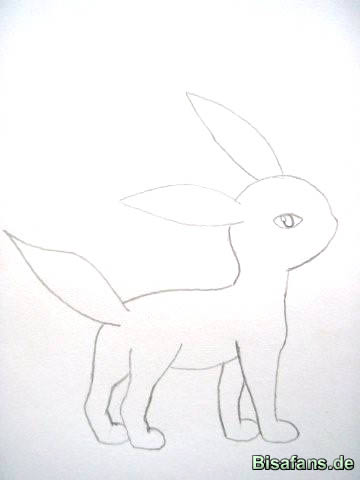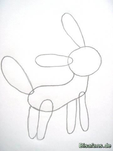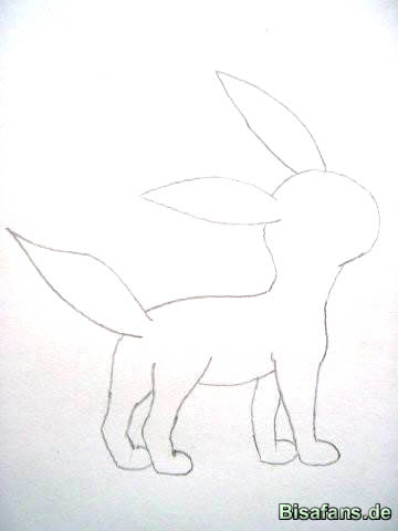 Ohren spitz, den Schwanz auch spitz und die Beine mit dem Körper
